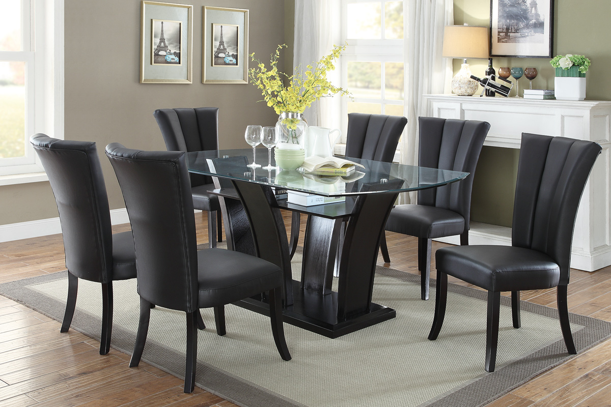 Black Painted Glass & Leatherette Chairs Dining Set