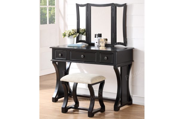 Bobkona Edna Vanity Set with Stool, Black