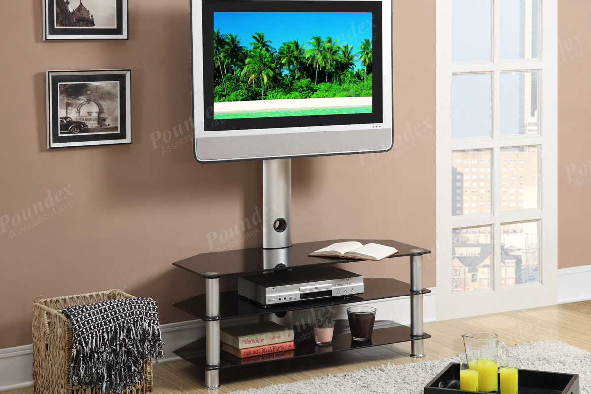 Black and Silver Finish Metal Glass TV Stand
